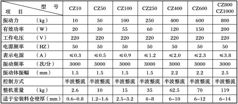 | 振動器無振動 | 1、電控箱無電流輸出。 2、聯(lián)接線斷路。 3、線圈損壞。 | 1、檢查電控箱及電源。 2、檢查聯(lián)接各接點是否斷開。 3、更換線圈。 |